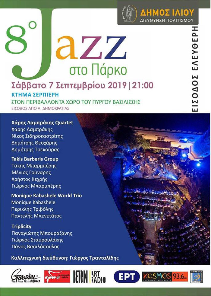 Η καρδιά της Ελληνικής jazz χτυπά για 8η χρονιά στο Ίλιον το Σάββατο 7 Σεπτεμβρίου 2019 και το «Jazz στο Πάρκο», που ξεκίνησε τα πρώτα του βήματα τον Σεπτέμβριο του 2010, υπό την καλλιτεχνική διεύθυνση του Γιώργου Τρανταλίδη συγκεντρώνει τους κορυφαίους του είδους στον περιβάλλοντα χώρο του μαγευτικού Πύργου Βασιλίσσης (κτήμα Σερπιέρη):