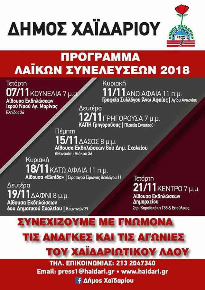 Σας προσκαλούμε να συμμετέχετε στις Λαϊκές Συνελεύσεις, που ξεκίνησαν στις 7/11 και θα πραγματοποιηθούν σε ολόκληρο το Χαϊδάρι.