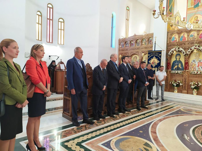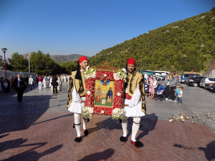 στη Μονή των Αγίων Κυπριανού και Ιουστίνης στη Φυλή. Στην Θεία Λειτουργία χοροστάτησε ο Μητροπολίτης Ωρωπού και Φυλής κ.κ. Κυπριανός ο οποίος, αμέσως μετά τη λιτάνευση της εικόνας, στο καθιερωμένο κέρασμα για τη γιορτή του στο αρχονταρίκι της Μονής, ευχαρίστησε θερμά τους εκπροσώπους των αδελφών εκκλησιών από τη Ρουμανία, τη Ρωσία, τη Βουλγαρία και την Ελληνική διασπορά για την συμμετοχή τους στην πανήγυρη της Μονής. «Πάντοτε να είμαστε ενωμένοι και αγαπημένοι για να μπορέσουμε να αντιμετωπίσουμε με πίστη τα προβλήματα που επιτρέπει ο Κύριος να παρουσιάζονται στην πορεία μας», υπογράμμισε ο Σεβασμιότατος. Ο Μητροπολίτης Ωρωπού και Φυλής κ.κ. Κυπριανός ευχαρίστησε το Δήμαρχο Φυλής Χρήστο Παππού για την σταθερή στήριξη της Μονής. «Ευχαριστώ ιδιαιτέρως τον Δήμαρχό μας, τον Χρήστο Παππού, ο οποίος έδωσε το παρών για άλλη μια φορά στην πανήγυρη μας, αλλά κυρίως τον ευχαριστώ για το μεγάλο έργο που έκανε στο μοναστήρι μας. Με τις προσπάθειές του, την καλοσύνη και την ευγένειά του συνέβαλε ουσιαστικά ώστε να καλλωπιστεί, να αναβαθμιστεί και να φωτιστεί ο περιβάλλων χώρος του μοναστηριού», είπε ο Σεβασμιότατος. Από την πλευρά του ο Δήμαρχος Φυλής, αφού ευχήθηκε Χρόνια Πολλά, διαβεβαίωσε πως η Διοίκηση του Δήμου είναι σταθερά προσηλωμένη στη συνέχιση των παρεμβάσεων που αφορούν στην ανάδειξη της πολιτιστικής κληρονομιάς του Δήμου, όπως την οραματίστηκε και ξεκίνησε να την υλοποιεί. Αφού ολοκληρώθηκαν οι τοποθετήσεις των εκπροσώπων των Εκκλησιών από το εξωτερικό ο ηγούμενος του Μοναστηριού Θεοδόσιος παρέθεσε επίσημο γεύμα σε Αρχιερείς, Ιερείς, μοναχούς, πολιτικούς και τοπικούς φορείς. Οι θρησκευτικές εκδηλώσεις για τον εορτασμό των Αγίων ξεκίνησαν την Δευτέρα 14 Οκτωβρίου, με τον Αγιασμό και τον Μέγα Εσπερινό και ολοκληρώθηκαν τη Τρίτη 15 Οκτωβρίου με τον Όρθρο, τη Θεία Λειτουργία και τη Λιτάνευση της Ιεράς Εικόνας και των Αγίων Λειψάνων το πρωί και τον Εσπερινό το απόγευμα.