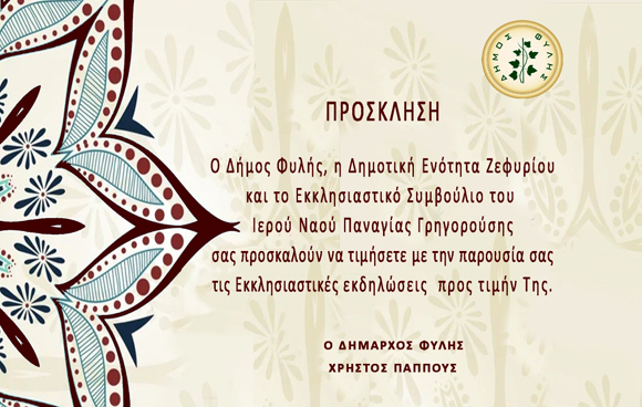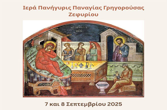 Ο Ιερός Ναός Παναγίας Γρηγορούσας Ζεφυρίου πανηγυρίζει την εορτή του Γενεθλίου της Υπεραγίας Θεοτόκου,