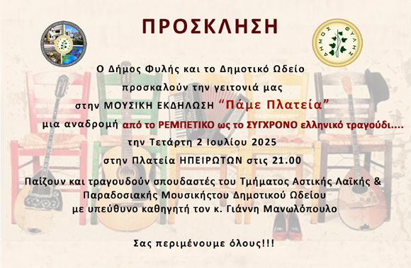 Ο Δήμος Φυλής και το Δημοτικό Ωδείο σας προσκαλούν σε μια σειρά μουσικών εκδηλώσεων
