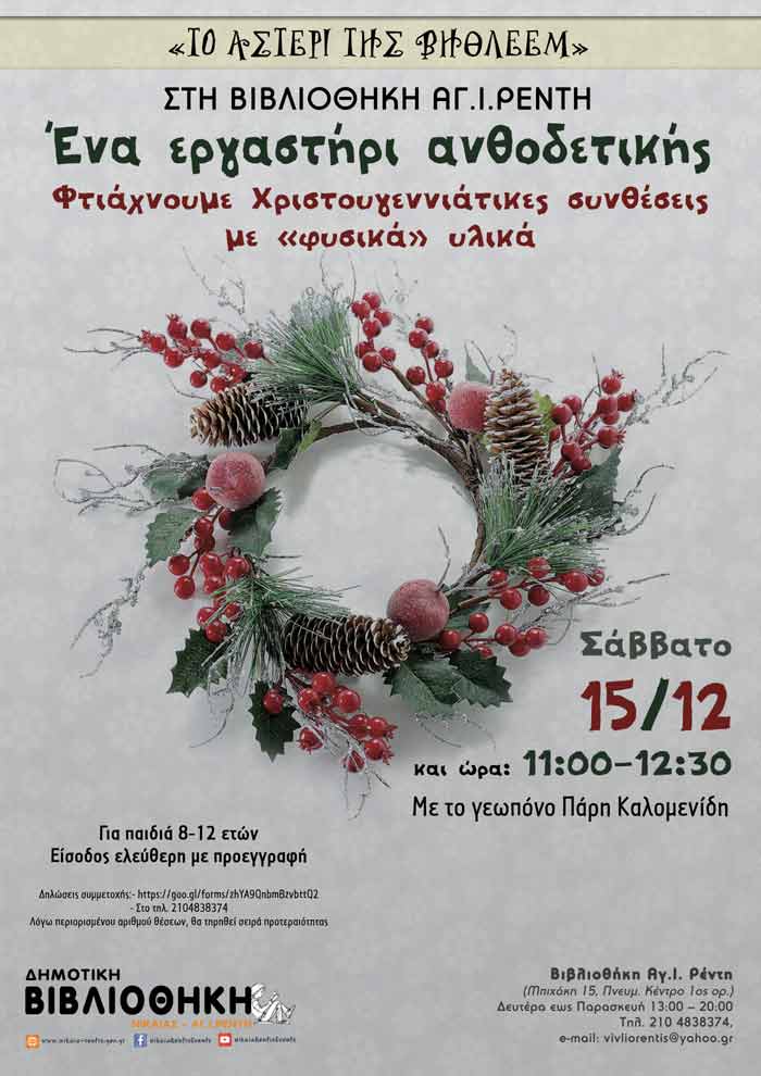 συμμετέχοντες θα φτιάξουν Χριστουγεννιάτικες συνθέσεις με «φυσικά» υλικά.