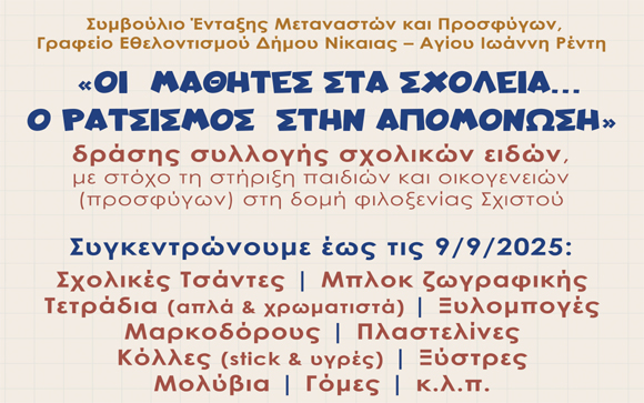Παραδόθηκαν τα σχολικά είδη για τα παιδιά της δομής προσφύγων Σχιστού