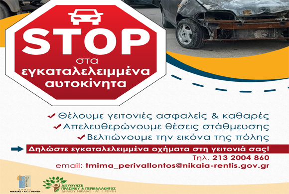 Στην απόσυρση εγκαταλελειμμένων οχημάτων από δρόμους, πεζοδρόμια,